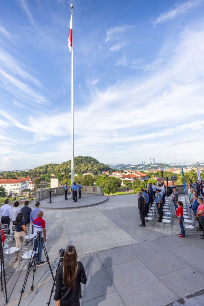 Durante el acto cívico ante la bandera nacional del Edificio de la Administración del Canal, el administrador del Canal, Ricaurte Vásquez Morales destacó “la necesidad permanente de mantenernos actualizados, de la colaboración a nivel nacional y de comprometernos a levantar la conciencia y la cultura para seguir siendo modelo para el país”.
